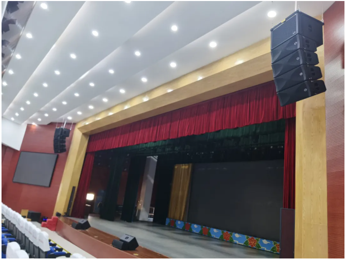 本次項目改造,主擴聲系統采用8只Mission PRO的WLA-210X線陣列音箱覆蓋全場,最大聲壓級可達138dB,3"高音釹鐵硼壓縮單元設計,低頻飽滿富有彈性,高頻明亮具有穿透力,具有良好穩定的聲學陣列傳輸性能,搭配WLA-210X SUB的線陣次低頻音箱,以4+1組合/組的形式分別懸掛于舞臺兩側,實現平穩均勻的聲壓覆蓋和良好的聲音指向。