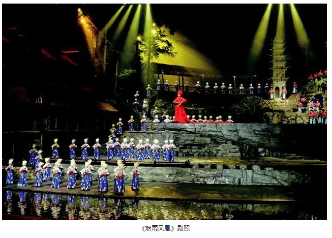 其實(shí),這個(gè)方法之前也曾多次使用。不過這次的實(shí)踐讓筆者發(fā)現(xiàn),很多情況下聲音的獨(dú)特效果可以根據(jù)舞美場景,甚至利用舞美裝置的特性來實(shí)現(xiàn)。這一點(diǎn)以后也可以繼續(xù)跟音響師們研究探討,從中發(fā)現(xiàn)、挖掘并再現(xiàn)出契合戲劇創(chuàng)意的聲音效果。例如,國外有的錄音棚用老教堂或者工廠廠房改造,以得到想要的聲音效果,包括好萊塢的電影錄音。這具有無限拓展的可能性,因?yàn)槊恳环N聲音在不同的空間都會是不同的,關(guān)鍵也在于音響師是否有主觀創(chuàng)新的想法,畢竟對于多數(shù)戲劇音響設(shè)計(jì)來說,音響師首先要保證的是戲劇對聲音的基本要求,然后才是個(gè)性化需求。另外,音響師對舞美空間的解讀也尤為重要,舉個(gè)例子,幾年前參加湖南鳳凰的《煙雨鳳凰》實(shí)景演出項(xiàng)目的舞美設(shè)計(jì),景的縱深有50 m多,一側(cè)是用于造景的山,一側(cè)是吊腳樓,中間風(fēng)雨橋作為兩者的連接,遠(yuǎn)處縱深就是利用實(shí)景的山和樹林。該劇的音響師就根據(jù)這樣一個(gè)悠遠(yuǎn)的空間環(huán)境,制造從左到右的聲像差,形成由遠(yuǎn)及近的聲音效果,的確讓觀眾感受到了空間距離上聲音傳遞效果,十分契合舞美所營造出的氛圍。